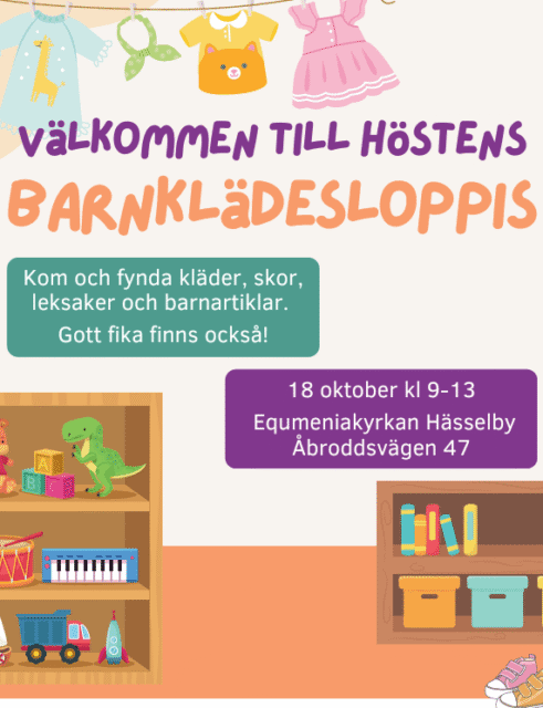 Den 18 oktober kan du fynda bland barnkläder, leksaker, spel och mycket annat. Du också kan möta några av ledarna i våra barn- och ungdomsgrupper och kanske få ett smakprov på vad som händer i de olika grupperna. Eller sitta ner en stund i serveringen och njuta av hembakat...