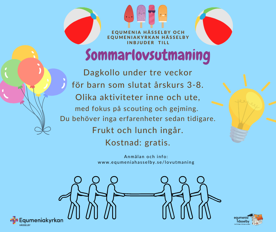 1 evenemang,![]() ![]() ![]() ![]() Sommarlovsutmaningen är lovaktiviteter för dig som under terminen går i skolan. Det är för lite olika åldrar olika veckor. I sommar kommer vi ha dagkollo under 10 dagar fördelade på tre veckor. Du får i första hand plats under en vecka. Anmälan öppnar i mitten av maj och platserna fördelas utifrån anmälningsdatum. Beroende på väder […] |