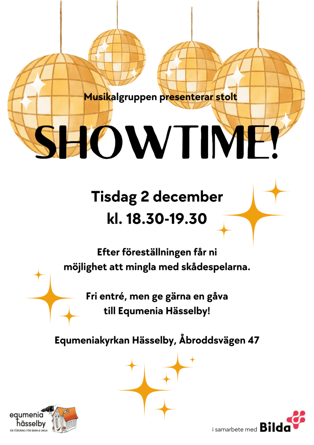 Under kvällen ser vi musikalgruppens föreställning. Vi ses klockan 18.00 innan föreställningen börjar. Föräldrar och syskon får gärna följa med och också se den.